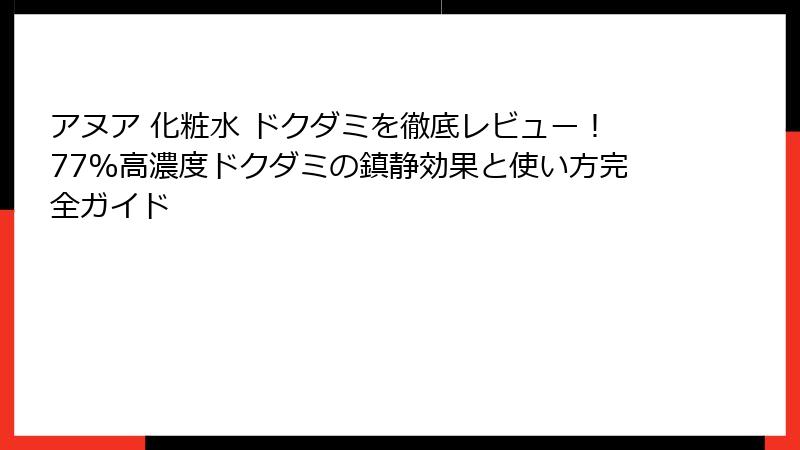 - アヌア 化粧水 ドクダミの使い方ガイド!効果を最大化するコツとレイヤリング方法