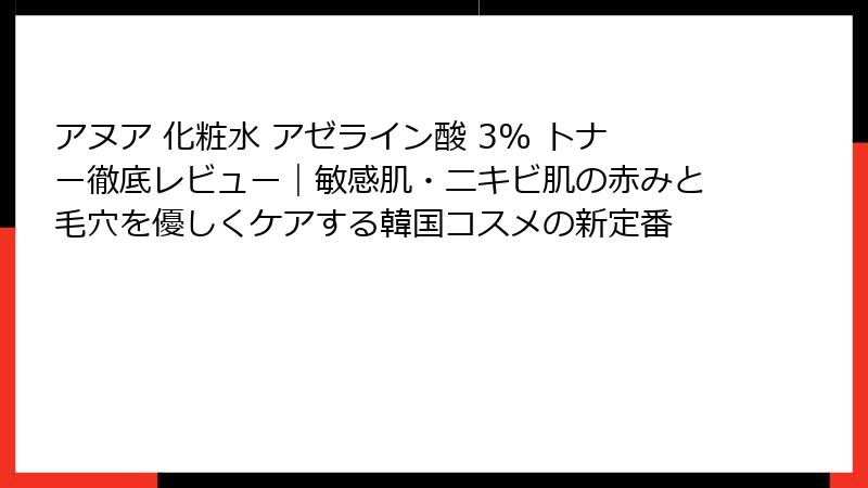 アヌア 化粧水 アゼライン酸というキーワードでこの記事に辿り着いたあなたは、きっと敏感肌やニキビ肌の悩みを抱えていて、効果的なスキンケア製品を探しているのではないでしょうか。