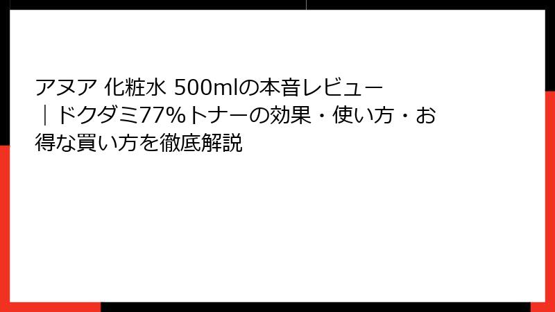 これらのポイントから、Anuaのブランド力がアヌア 化粧水 500mlの人気を支えていることがわかります。
