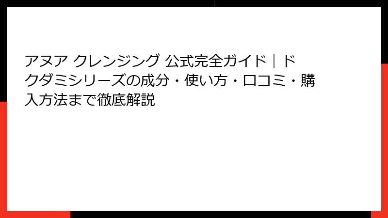 アヌア クレンジング 公式完全ガイド|ドクダミシリーズの成分・使い方・口コミ・購入方法まで徹底解説