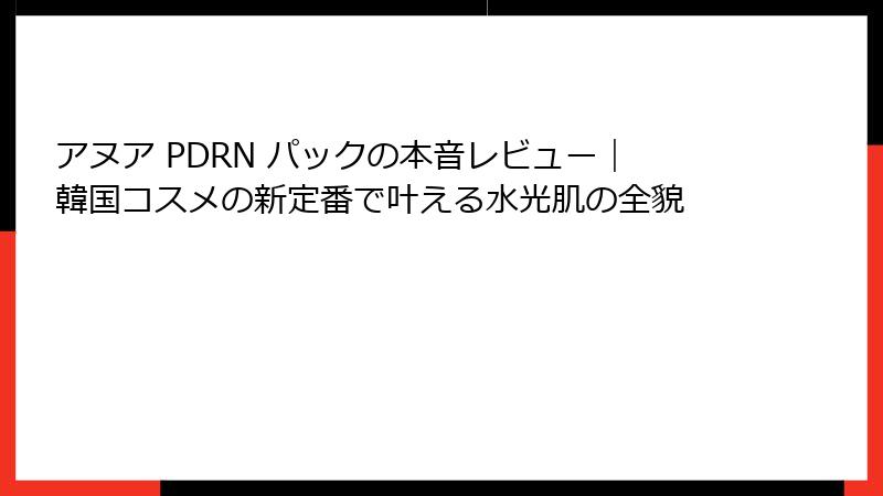 - アヌア PDRN パックをおすすめする人&購入ガイド:今すぐ手に入れて輝く肌へ