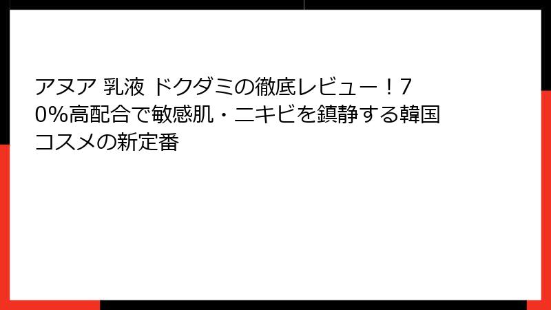 この使用法が、アヌア 乳液 ドクダミの鎮静効果の基盤となっています。