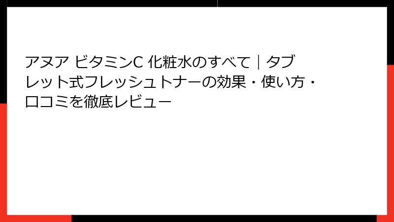 アヌア ビタミンC 化粧水の最大の魅力は、タブレット式のフレッシュなビタミンCを採用している点で、従来の化粧水とは一線を画す鮮度の高さが特徴です。