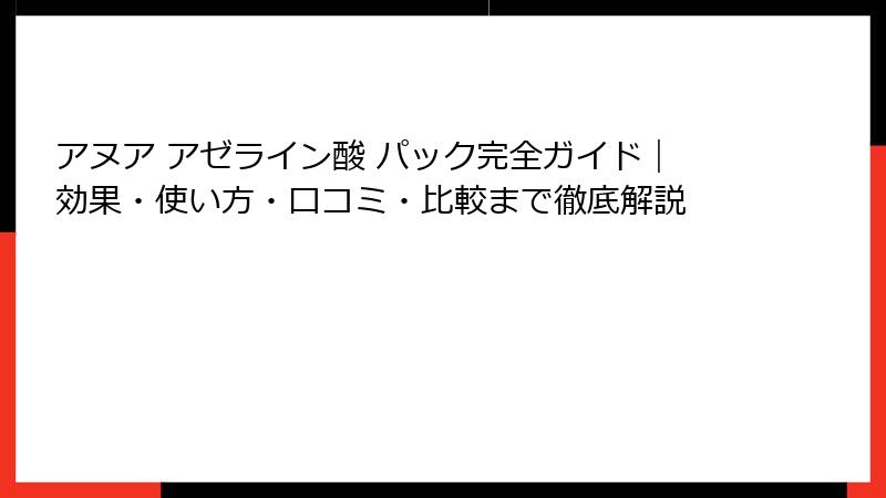 アヌア アゼライン酸 パックのガイドを、初心者目線で再述します。