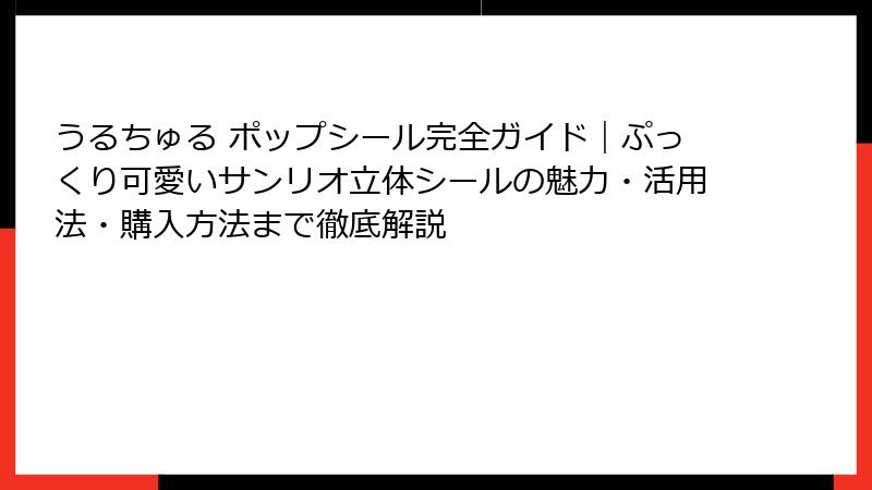 - うるちゅるポップシールで日常をポップに彩ろう!今すぐ手に入れる理由