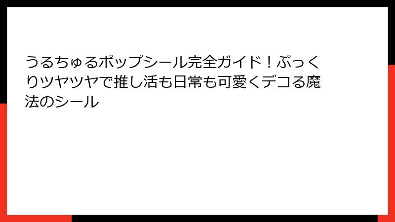 うるちゅるポップシール完全ガイド!ぷっくりツヤツヤで推し活も日常も可愛くデコる魔法のシール