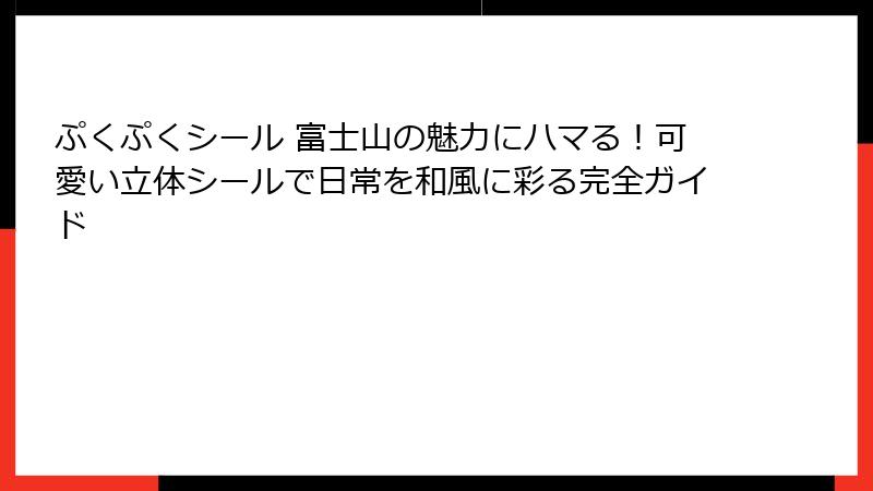 ぷくぷくシール 富士山を探している方にとって、この記事はぷくぷくシール 富士山の魅力や背景を深く掘り下げた内容となっています。