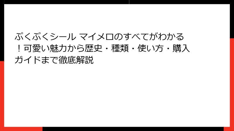ぷくぷくシール マイメロのすべてがわかる!可愛い魅力から歴史・種類・使い方・購入ガイドまで徹底解説