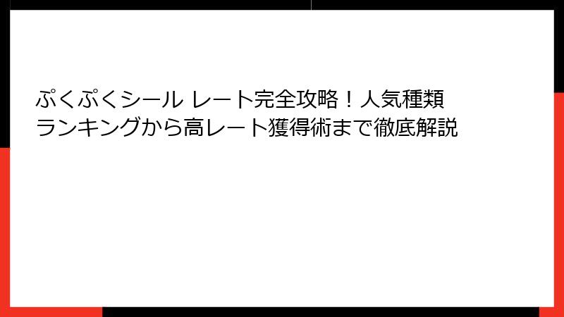 このまとめで、ぷくぷくシール レートの全てを再確認しました。