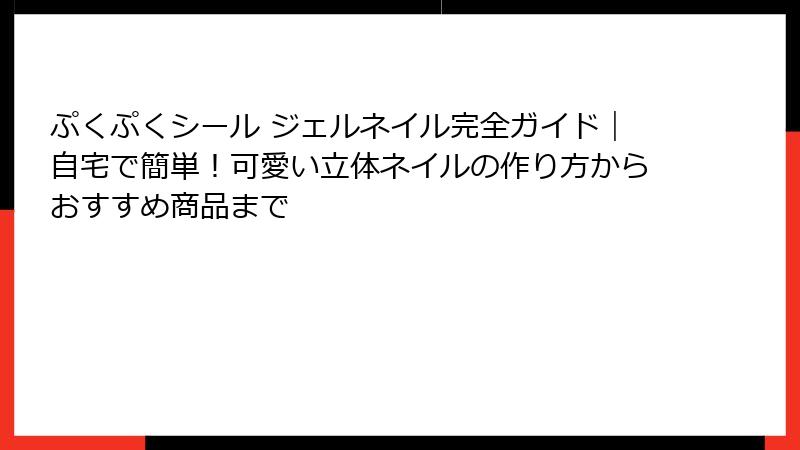 ぷくぷくシール ジェルネイル完全ガイド|自宅で簡単!可愛い立体ネイルの作り方からおすすめ商品まで