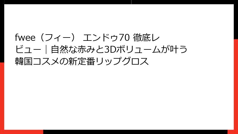 fwee(フィー) エンドゥ70 徹底レビュー|自然な赤みと3Dボリュームが叶う韓国コスメの新定番リップグロス