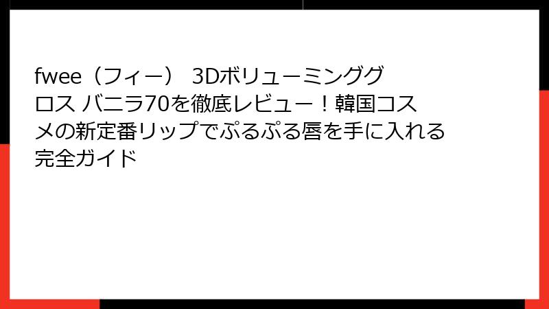 ここでは、そんなfwee(フィー) 3Dボリューミンググロス バニラ70の魅力に深く迫り、なぜこれが韓国コスメの新定番となり得るのかを詳しく探っていきましょう。