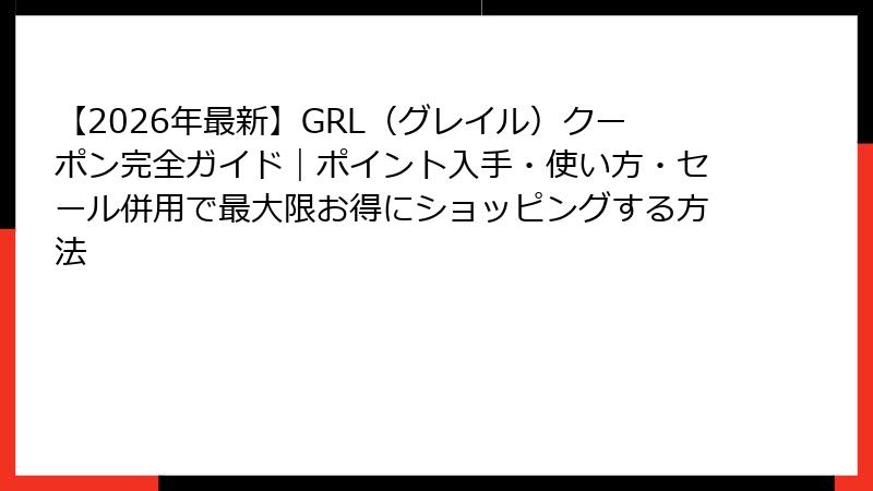 【2026年最新】GRL(グレイル)クーポン完全ガイド|ポイント入手・使い方・セール併用で最大限お得にショッピングする方法