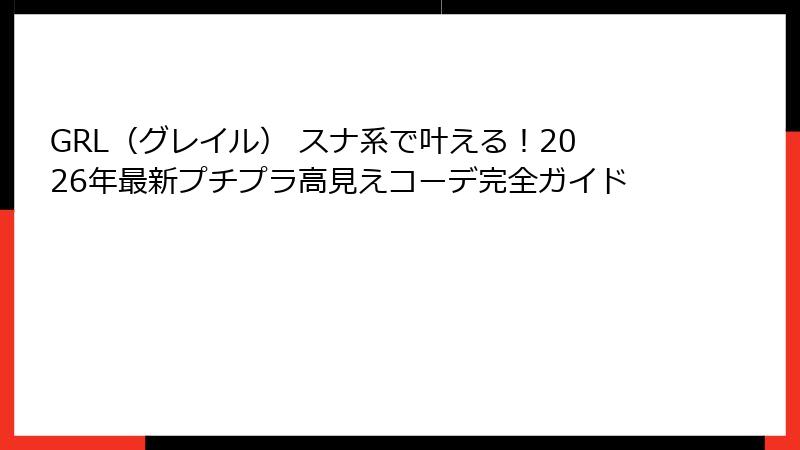 GRL(グレイル) スナ系で叶える!2026年最新プチプラ高見えコーデ完全ガイド