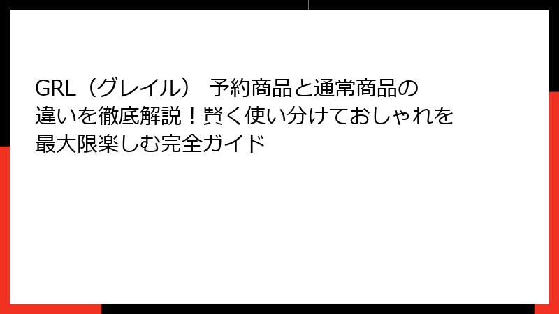- 予約商品 vs 通常商品:GRLでどちらを選ぶ?違いを比較して賢い選択を