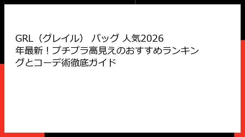ファッション好きの皆さん、こんにちは! 最近、SNSや街中でよく見かけるあの可愛いバッグ、実はGRL(グレイル)のものじゃないですか? 「GRL バッグ 人気」で検索すると、数え切れないほどのレビューやコーデ画像が溢れ出てきますよね。