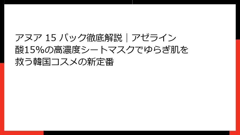 アヌア 15 パック徹底解説|アゼライン酸15%の高濃度シートマスクでゆらぎ肌を救う韓国コスメの新定番