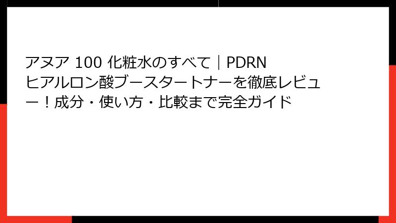 - アヌア PDRN100 ヒアルロン酸ブースタートナーの魅力とは? 製品概要と人気の理由