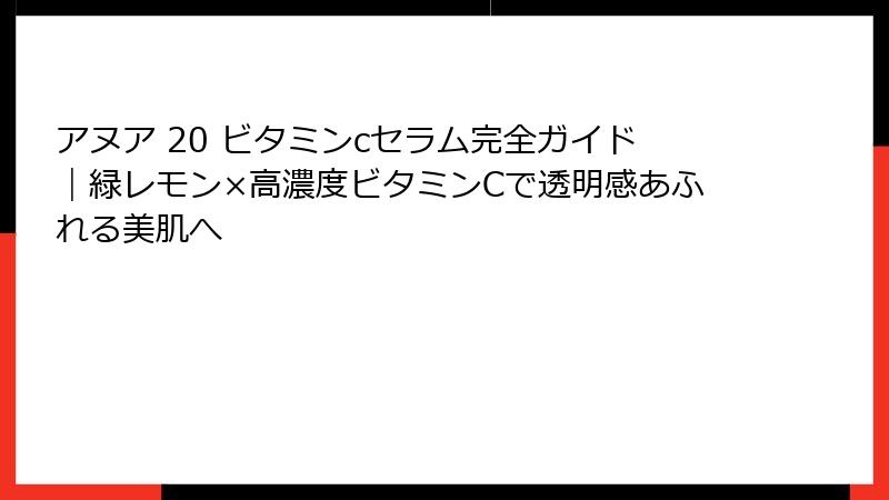 アヌア 20 ビタミンcセラム完全ガイド|緑レモン×高濃度ビタミンCで透明感あふれる美肌へ