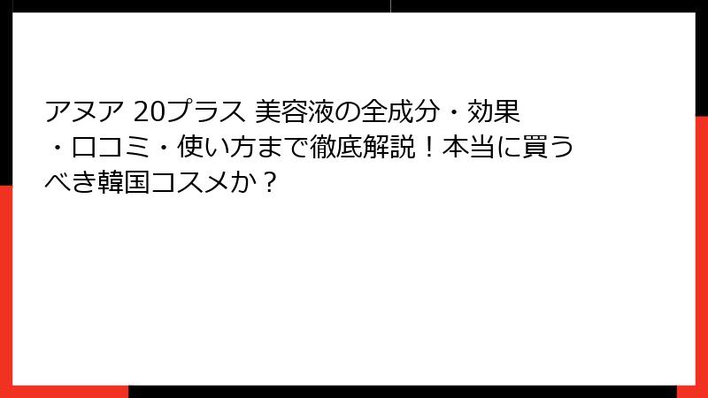 韓国コスメの新定番として、SNSでバズり、口コミ評価も非常に高いアヌア 20プラス 美容液について、今回はその魅力を徹底的に掘り下げていきましょう。