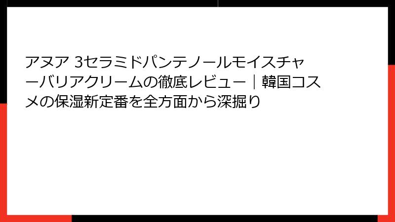 - アヌア 3セラミドパンテノールモイスチャーバリアクリームの魅力とは? 韓国コスメの新定番を徹底紹介