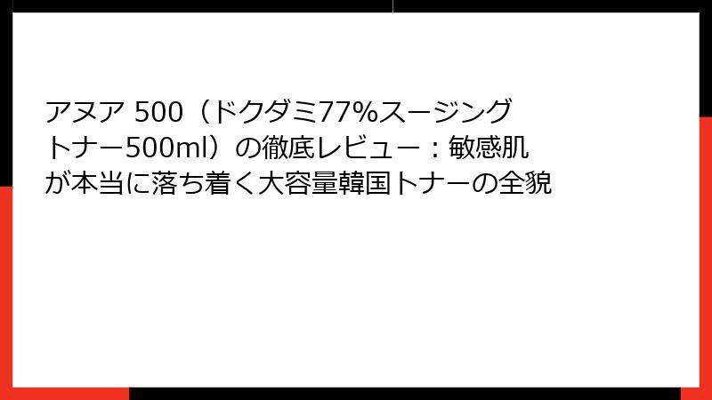 アヌア 500として親しまれているドクダミ77%スージングトナー500mlは、韓国発のスキンケアブランドAnuaが提供する大容量のトナー製品です。