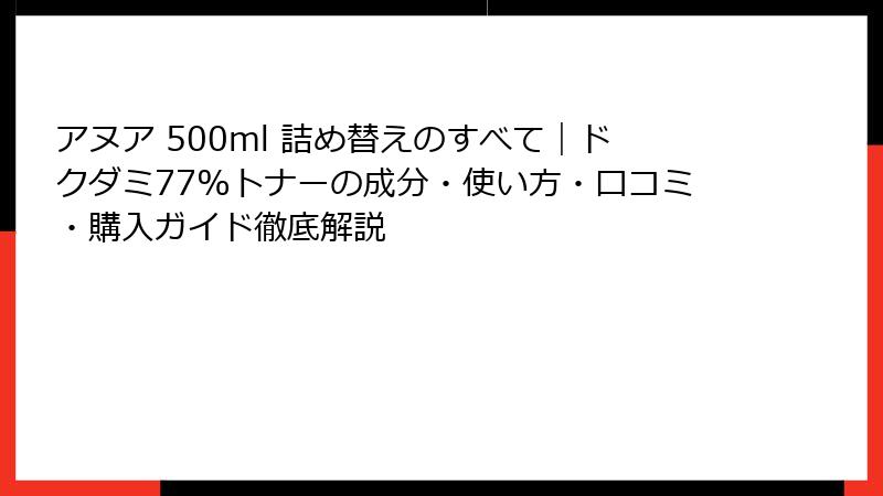 - アヌア 500ml 詰め替えの成分を深掘り!ドクダミ77%の効果と科学的な根拠