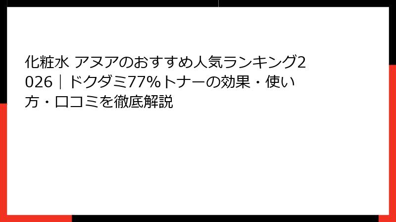 化粧水 アヌアのおすすめ人気ランキング2026|ドクダミ77%トナーの効果・使い方・口コミを徹底解説