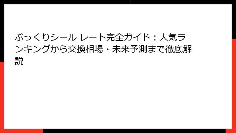 - ぷっくりシール レートを活かした交換術:初心者から上級者までの実践マニュアル