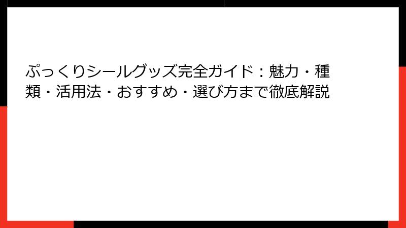 ぷっくりシールグッズ完全ガイド:魅力・種類・活用法・おすすめ・選び方まで徹底解説