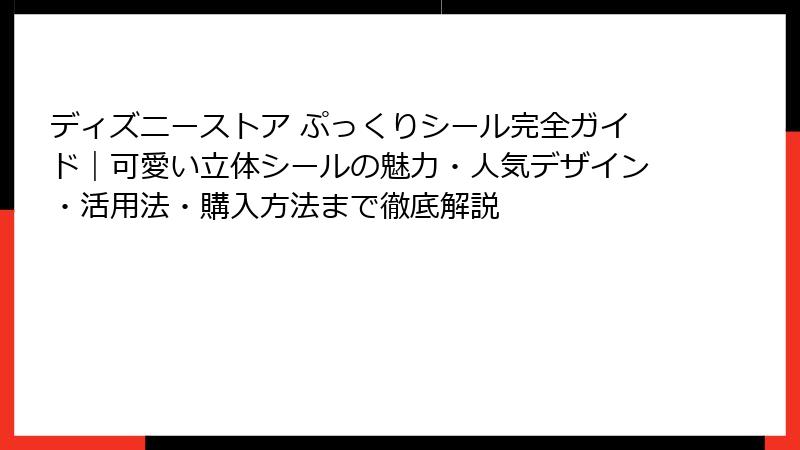 - ディズニーストアのぷっくりシールとは?可愛らしさと立体感の魅力に迫る