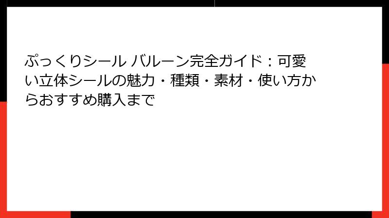 - ぷっくりシール バルーンをおすすめする理由と購入ガイド