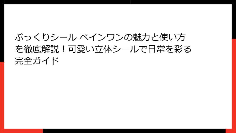 ぷっくりシール ペインワンの魅力と使い方を徹底解説!可愛い立体シールで日常を彩る完全ガイド