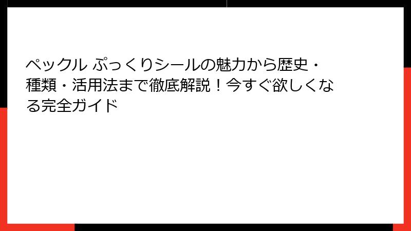 - ペックル ぷっくりシールを今すぐゲット!おすすめ購入ガイドとまとめ
