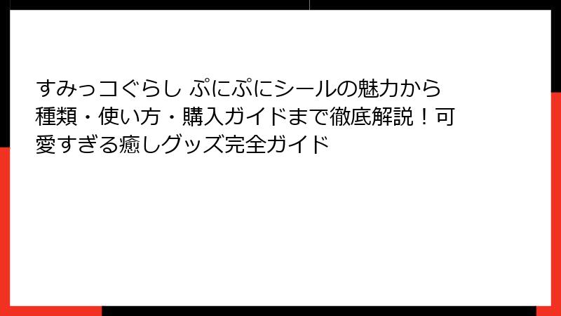 すみっコぐらし ぷにぷにシールの魅力から種類・使い方・購入ガイドまで徹底解説!可愛すぎる癒しグッズ完全ガイド
