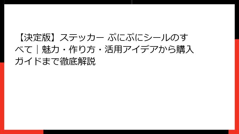 【決定版】ステッカー ぷにぷにシールのすべて|魅力・作り方・活用アイデアから購入ガイドまで徹底解説