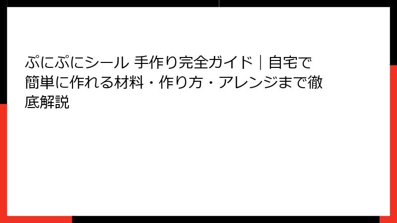 この記事では、ぷにぷにシールの基本から、手作りする楽しさまでを詳しく掘り下げていきます。