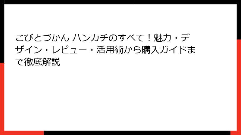 ここでは、人気のコビトを詳しく紹介し、ハンカチとの関連を掘り下げます。