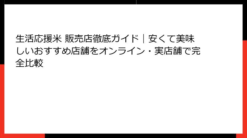 - 生活応援米とは?人気の理由と販売店の探し方