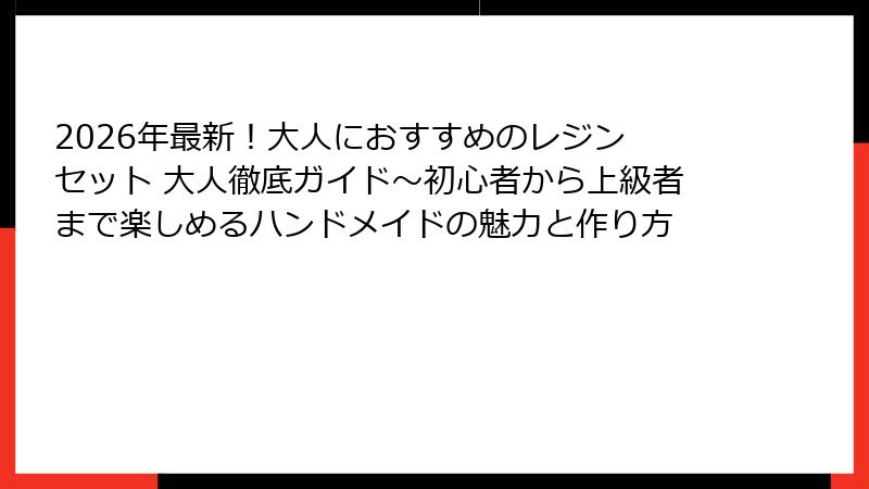 このまとめを通じて、レジン セット 大人の全貌をお伝えしました。