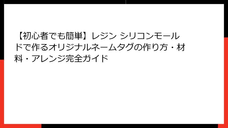 この記事では、レジン シリコンモールド ネームタグというキーワードを中心に、初心者の方でも簡単に始められる魅力について詳しく掘り下げていきます。