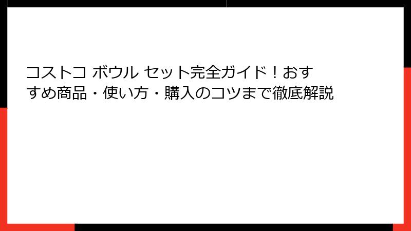 - コストコ ボウル セットの魅力とは?人気の秘密を徹底解説