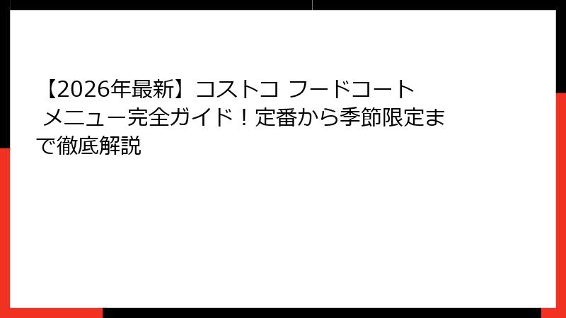 このガイド&まとめで、コストコ フードコート メニューの活用が明確に。