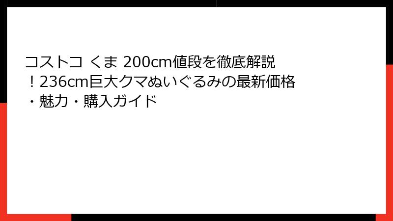 - コストコクマ200cmの購入ガイド!店舗・オンラインの買い方と注意点