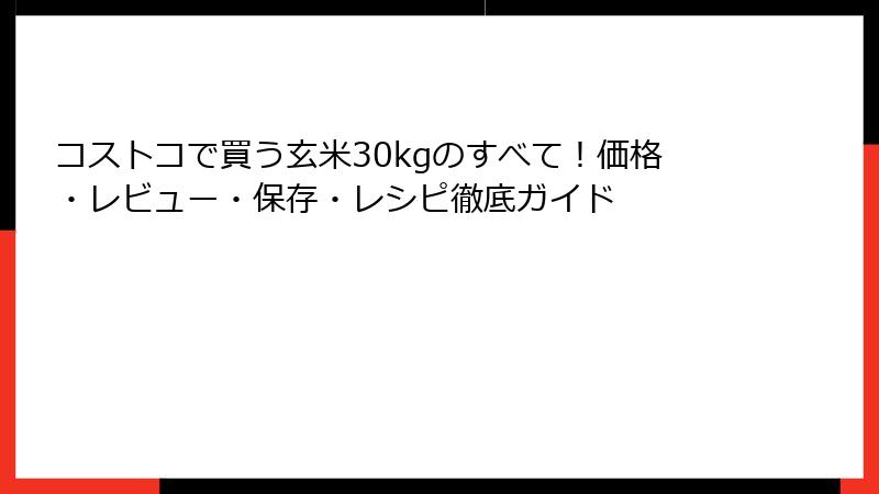- 玄米30kgをコストコで買う際の価格比較と賢い買い方ガイド