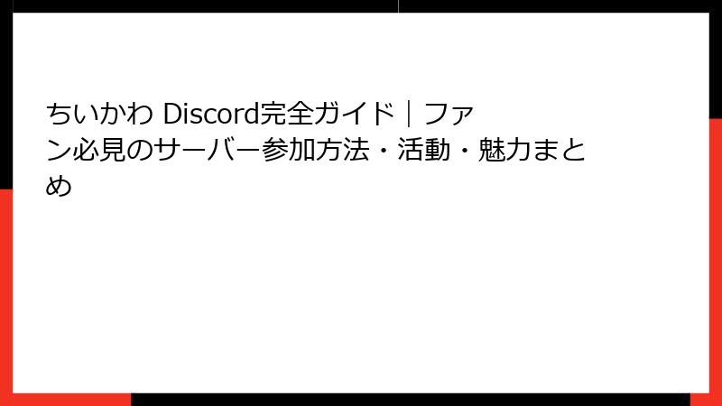 - 人気のちいかわDiscordサーバー一覧:おすすめコミュニティを徹底レビュー