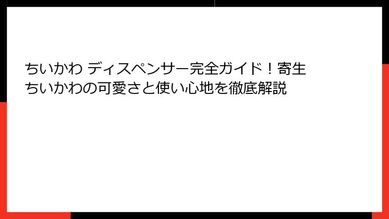 この記事では、ちいかわ ディスペンサーの魅力に焦点を当て、寄生されたちいかわの可愛らしいデザインから、その背景にあるストーリーまでを詳しく掘り下げていきます。