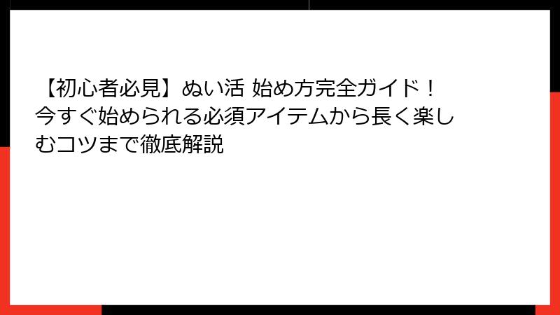 2. お出かけぬい活の実践ガイドと安全対策