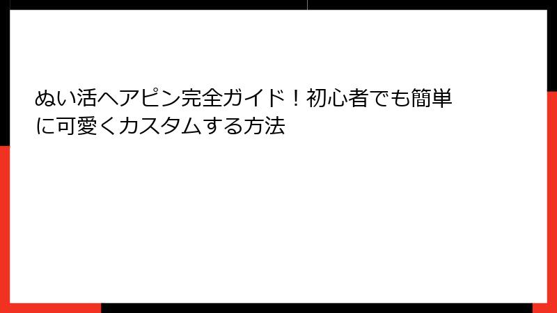 ぬい活 ヘアピンは、道具不要で即実践可能で、初心者でも失敗しにくいです。