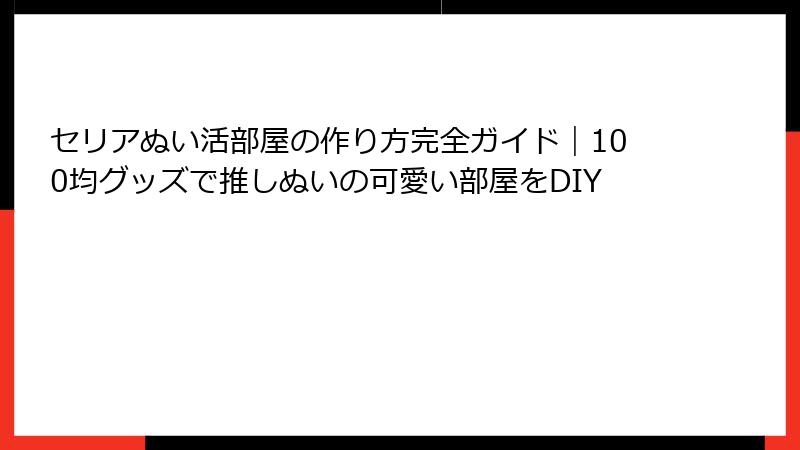 - セリアぬい活部屋の作り方:初心者向けDIYステップを写真付きで解説
